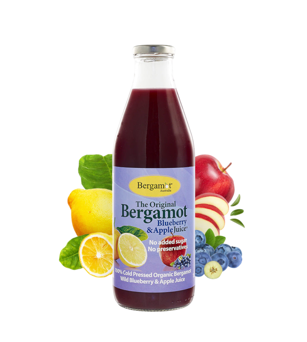 Discover our Blueberry Bergamot Juice – a harmonious blend of flavours and nutrition. This refreshing juice combines the sweetness of blueberries, the crispness of apples, and the citrusy zest of bergamot.